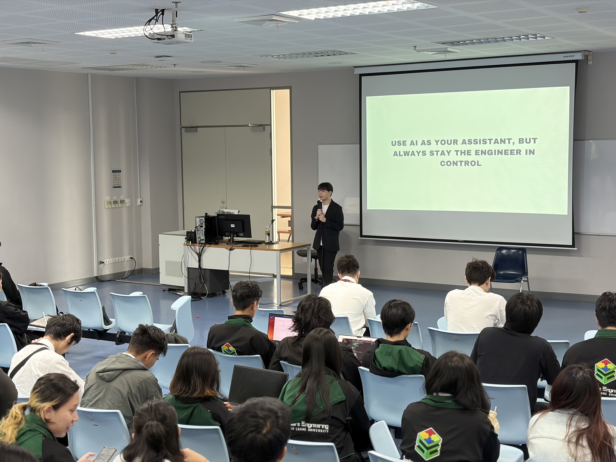 On 14 March 2026, the Division of Placement and Cooperative Education, in collaboration with the School of Applied Digital Technology (Software Engineering Major), held the “School Meets Students” activity to prepare students before starting their internships. The session introduced guidelines on selecting suitable internship organizations and provided advice on preparing for internship placements. It also featured an experience-sharing session from a guest speaker who shared real-world work experiences with the students at Room E4A-714, E4 Building.