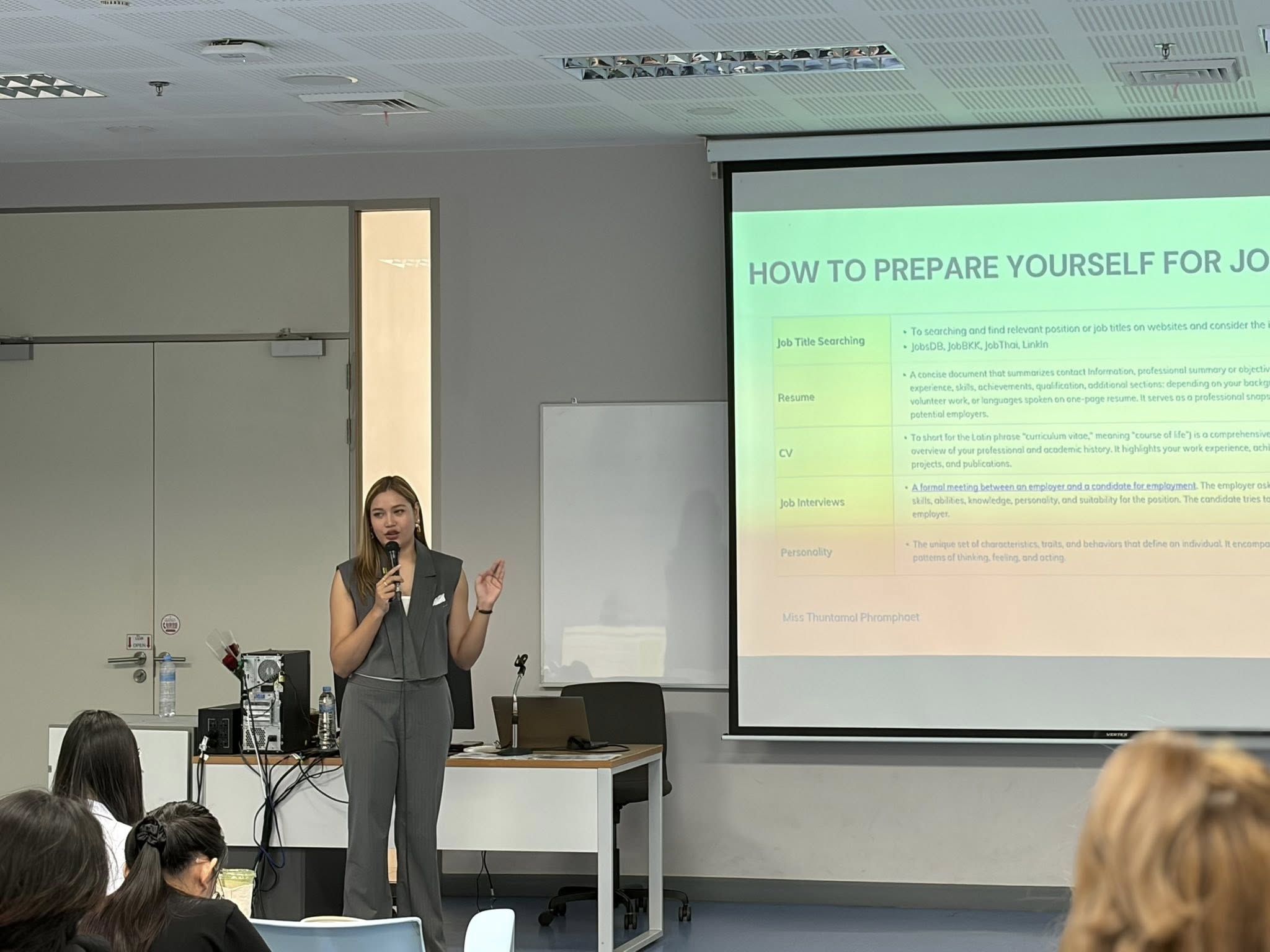 On 14 March 2026, the Division of Placement and Cooperative Education, in collaboration with the School of Cosmetic Science (Cosmetic Science Major), held the “School Meets Students” activity at Room E4A-718, E4 Building to prepare students before starting their internships. The session introduced guidelines on selecting suitable internship organizations and provided advice on preparing for internship placements. It also featured an experience-sharing session from a guest speaker who shared real-world work experiences with the students. Guest speaker: Ms. Thanyamon Prompaet, Managing Director and Industrial Manager, Mega Healthy Group Limited Partnership and Optimal Tech Co., Ltd.
