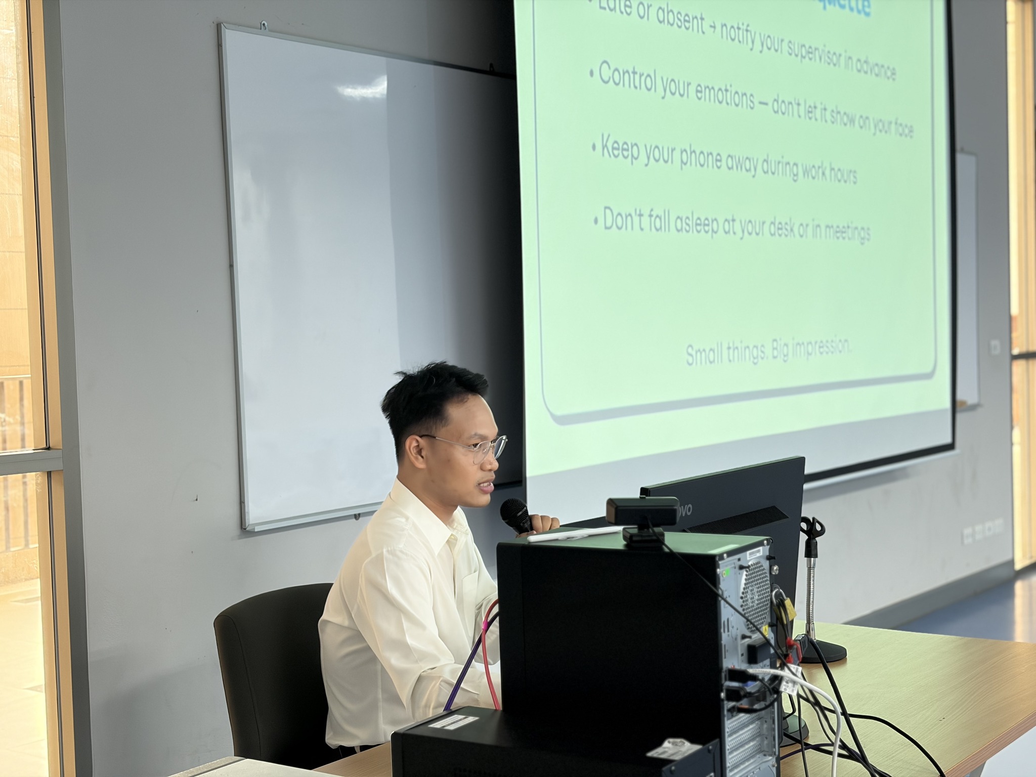 On 4 April 2026, the Division of Placement and Cooperative Education, in collaboration with the School of Applied Digital Technology (Digital Technology for Business Innovation Program), held the “School Meets Students” activity at E4A-614 to prepare students before starting their internships. The session introduced guidelines on selecting suitable internship organizations and provided advice on preparing for internship placements. The activity also featured an experience-sharing session delivered by the guest speaker, Mr. Pichet Phansuawan, Media Content Creator at TG Cellular World Co., Ltd., who shared real-world professional insights with the students.