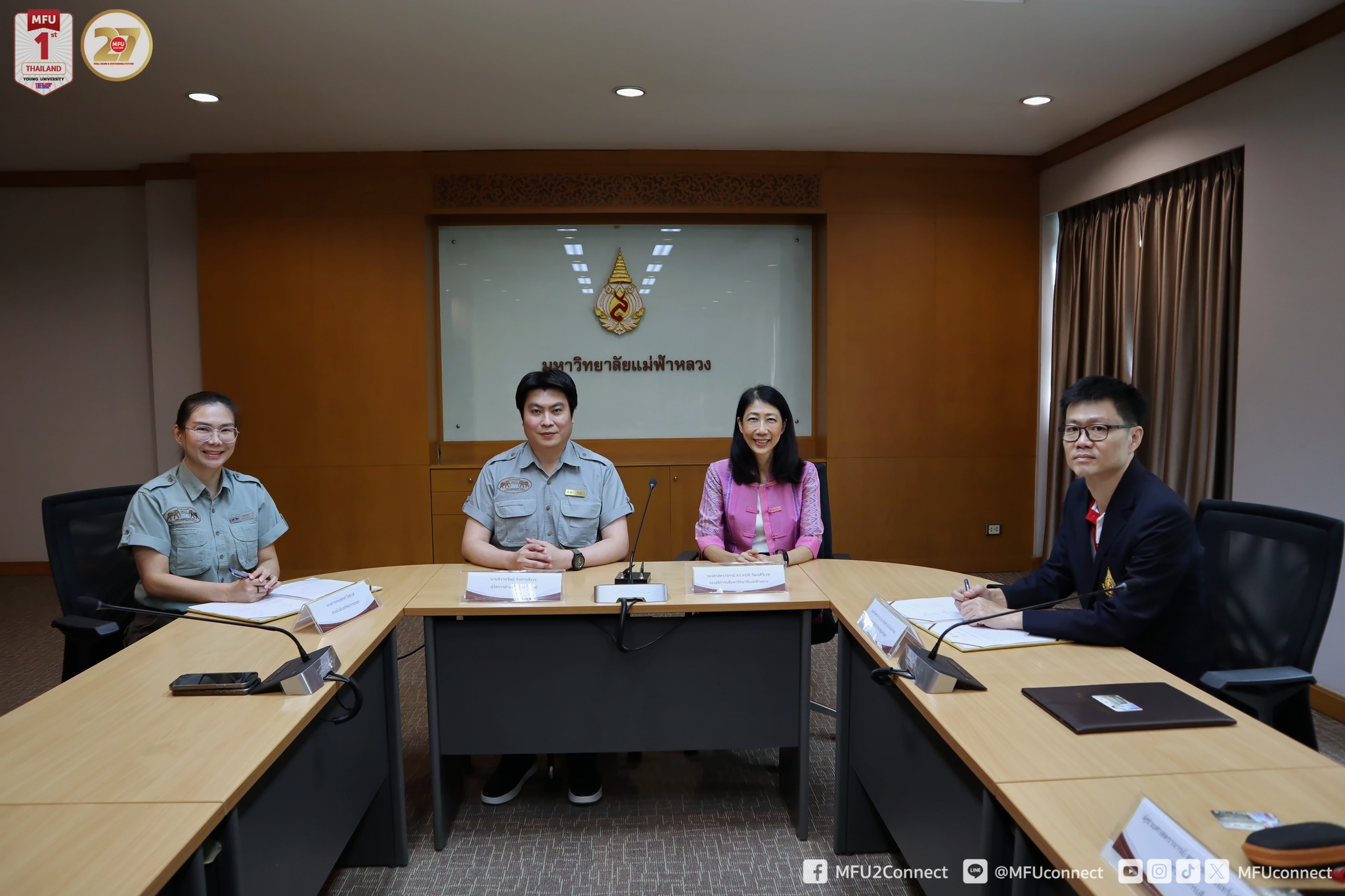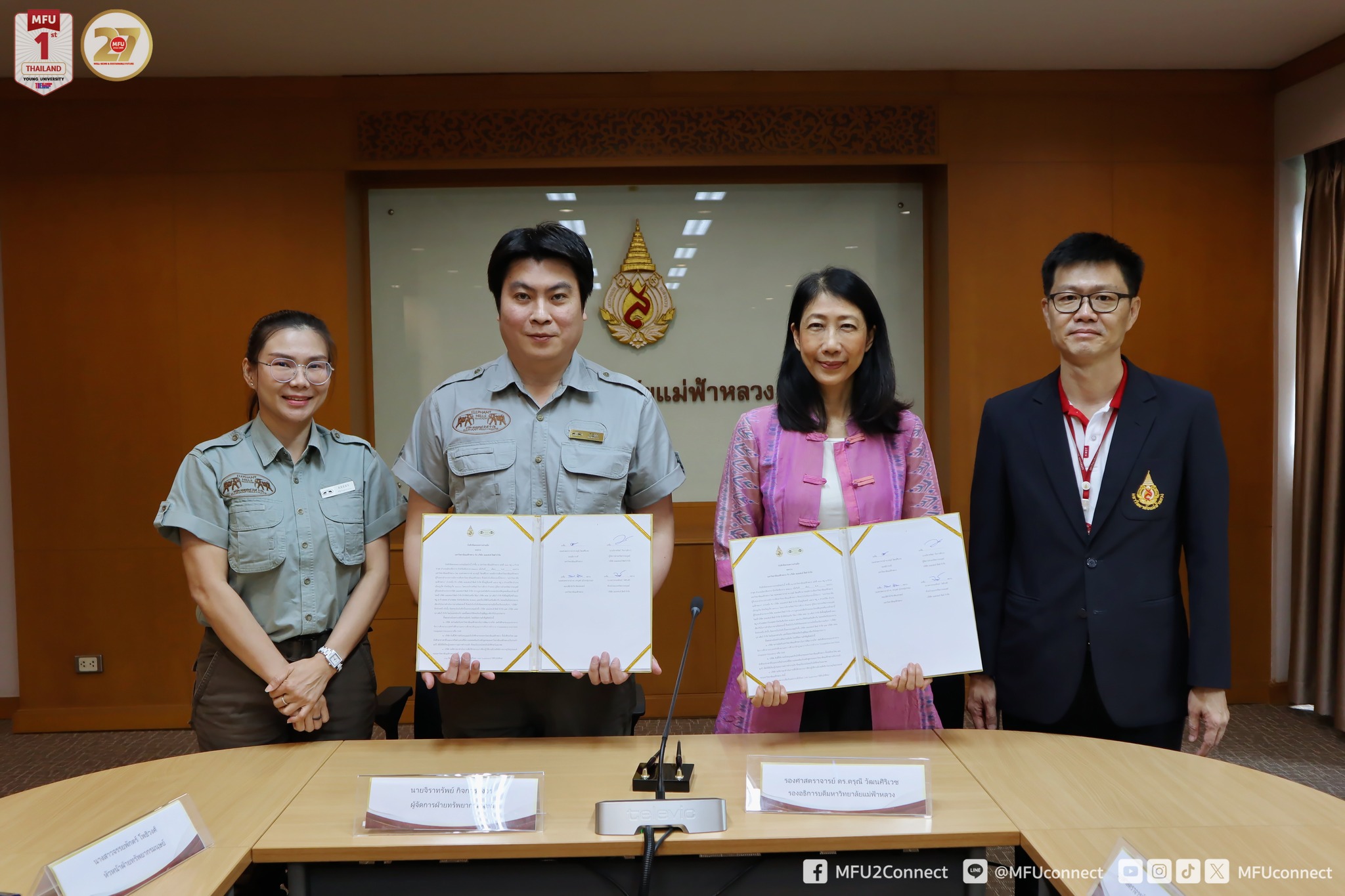 ส่วนจัดหางานและฝึกงานของนักศึกษา มหาวิทยาลัยแม่ฟ้าหลวง จัดพิธีลงนามบันทึกข้อตกลงความร่วมมือ (MOU) กับ บริษัท เอเลเฟนท์ ฮิลล์ จำกัด ณ ห้องประชุมดอยแง่ม อาคารวันชัย ศิริชนะ โดยมี รศ.ดร.ดรุณี วัฒนศิริเวช รองอธิการบดี มหาวิทยาลัยแม่ฟ้าหลวง และ คุณจิราทรัพย์ กิจการสังวร ผู้จัดการฝ่ายทรัพยากรมนุษย์ บริษัท เอเลเฟนท์ ฮิลล์ จำกัด ร่วมลงนาม พร้อมด้วย รศ.ดร.สรบุศย์ รุ่งโรจน์สุวรรณ์ คณบดีสำนักวิชาศิลปศาสตร์ และอาจารย์ประจำสำนักวิชาร่วมเป็นสักขีพยานในพิธี