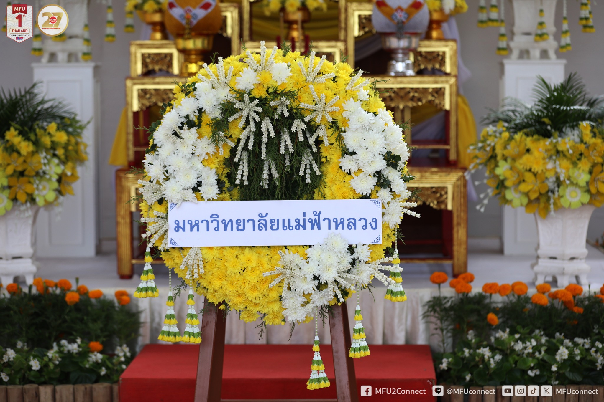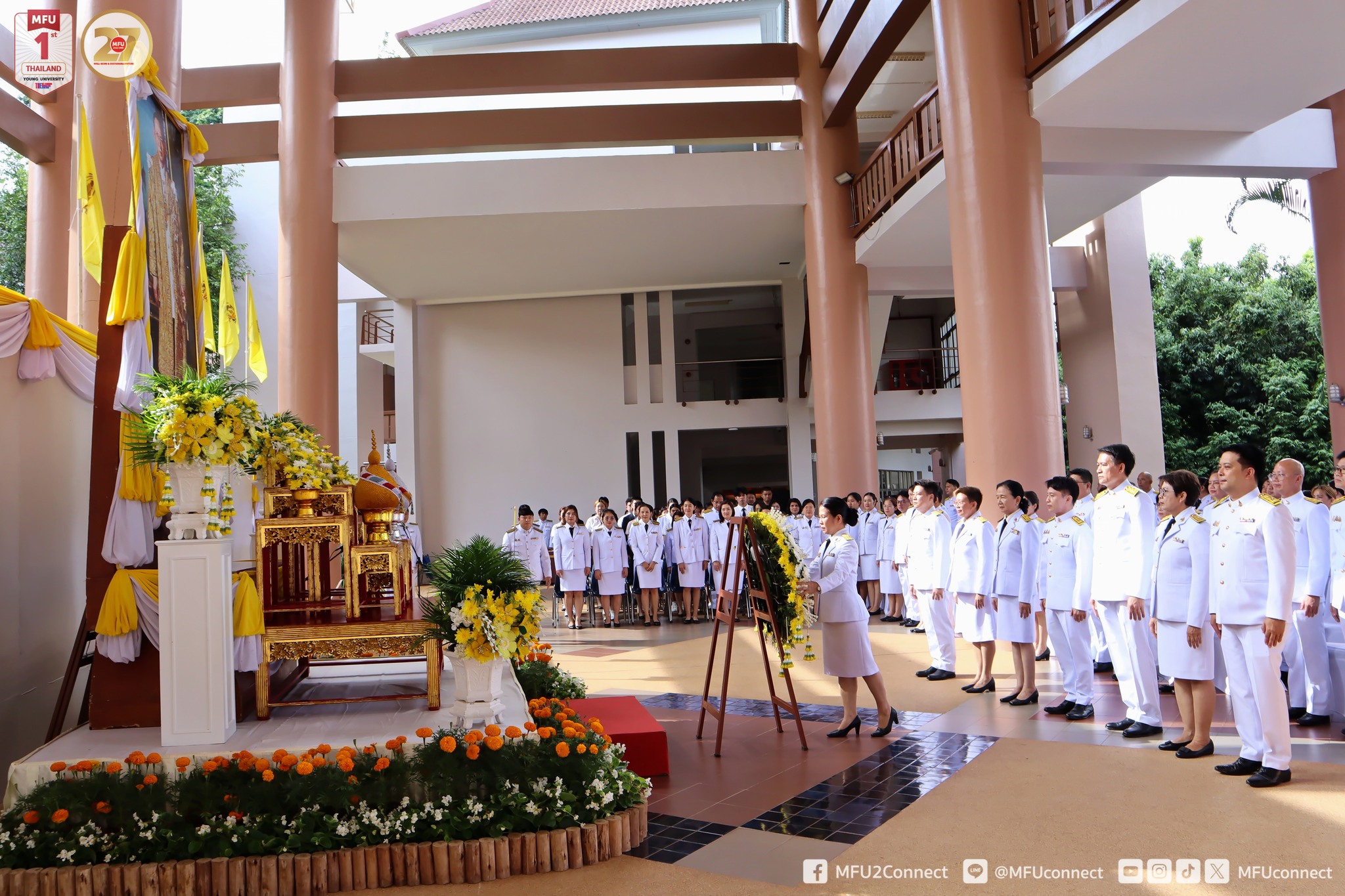 ส่วนจัดหางานและฝึกงานของนักศึกษา มหาวิทยาลัยแม่ฟ้าหลวง เข้าร่วมพิธีวางพวงมาลาและน้อมรำลึกในพระมหากรุณาธิคุณ เนื่องใน “วันนวมินทรมหาราช” เพื่อเป็นวันรำลึกถึง พระบาทสมเด็จพระบรมชนกาธิเบศร มหาภูมิพลอดุลยเดชมหาราช บรมนาถบพิตร พระมหากษัตริย์ผู้ทรงเปี่ยมด้วยพระเมตตาและพระวิริยะอุตสาหะ ที่ทรงอุทิศพระองค์เพื่อความผาสุกของพสกนิกรชาวไทย ตลอดระยะเวลาแห่งการครองราชย์กว่า 70 ปี โดยมี ผู้ช่วยศาสตราจารย์ ดร.มัชฌิมา นราดิศร อธิการบดี เป็นประธานในพิธี พร้อมด้วยคณะผู้บริหาร พนักงาน และนักศึกษา เข้าร่วมพิธีโดยพร้อมเพรียง