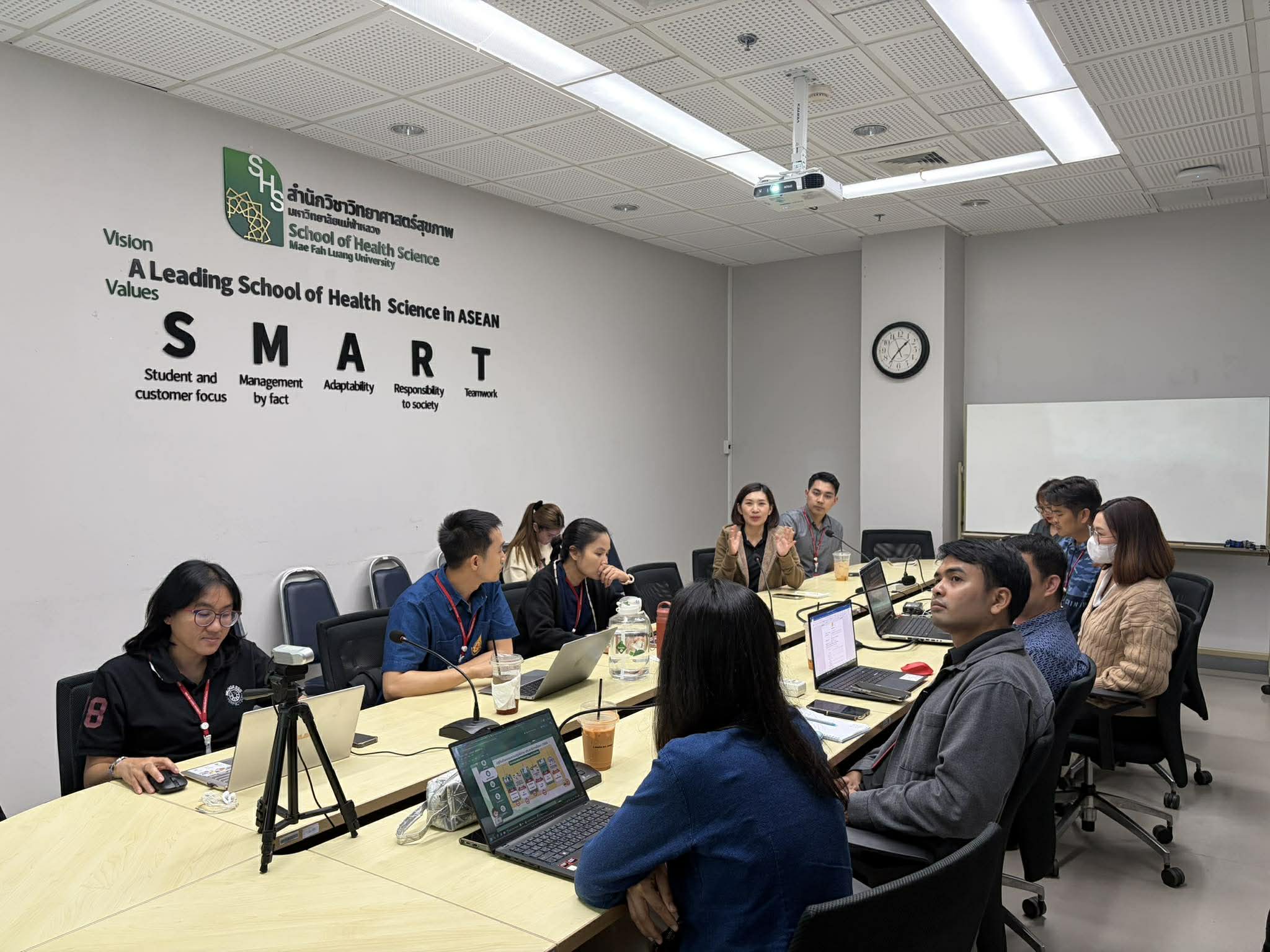 the Division of Placement and Cooperative Education organized the 1st Co-op Roadshow 2026 to brief and publicize the overall activity calendar for Academic Year 2026, provide information on internship site visits for students in Semester 2, Academic Year 2025, explain the implementation of the MFU Internship Skill Certificate, and report on internship operations for Academic Year 2024. The activity was held with lecturers from the School of Health Science