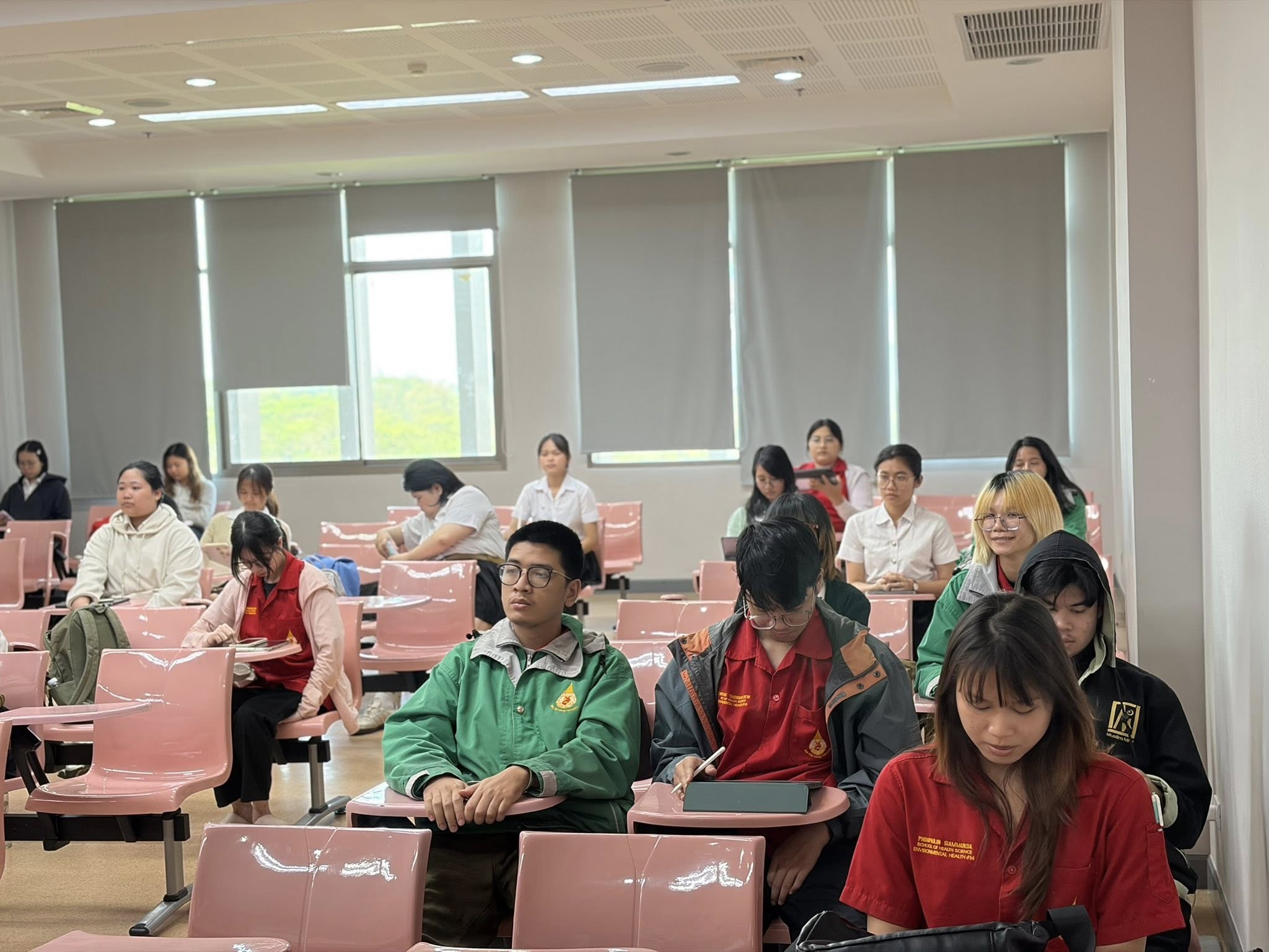 On 22 March 2026, the Division of Placement and Cooperative Education, in collaboration with the School of Health Sciences (Environmental Health Major), held the “School Meets Students” activity at Room E4A-607 to prepare students before starting their internships. The session introduced guidelines on selecting suitable internship organizations and provided advice on preparing for internship placements. It also featured an experience-sharing session delivered by guest speakers and faculty members, sharing real-world work experiences with the students. Guest speakers: Mr. Phattharakorn Suphantong, Research Promotion Officer, Faculty of Medicine Vajira Hospital, Navamindradhiraj University; and Mr. Jittinan Leethong, Senior Environment, Canon Hi-Tech (Thailand) Ltd.